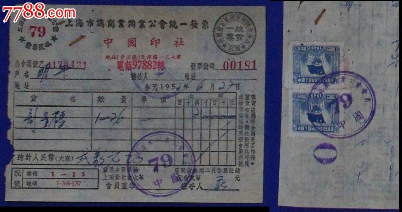 1952年中国印社 1952年中国印社发票